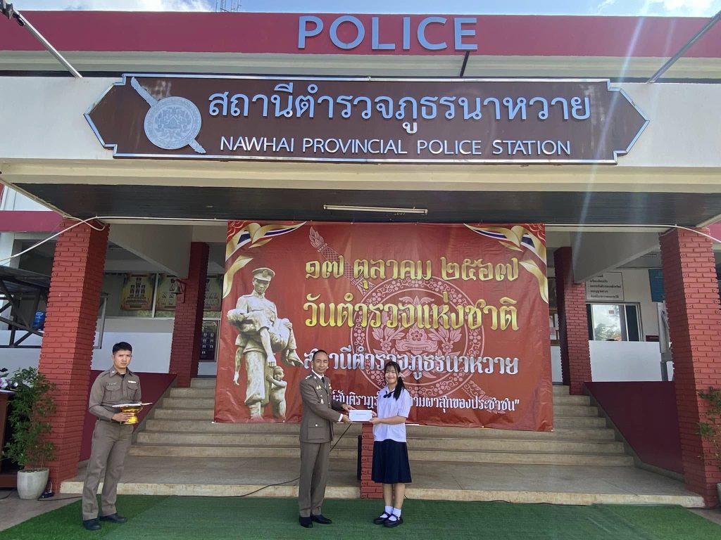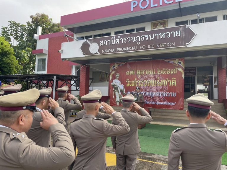 วันนี้ (17 ตุลาคม 2567) เวลา 08.00 น. นำโดย พ.ต.อ.ประดิษฐ์ ติ๊บมา ผกก.สภ.นาหวาย, พ.ต.ท.ชวสิทธิ์ กัลยาณมิตร รอง ผกก.สส.ฯ, พ.ต.ท.สมบัติ อินถอด รอง ผกก.(สอบสวน)ฯ, พ.ต.ท.วรภาส ศรีอ่อน รอง ผกก.ป.ฯ พร้อมข้าราชการตำรวจ สภ.นาหวาย ร่วมกล่าวคำสัตย์ปฎิญาณตนและอุดมคติตำรวจ เนื่องในวันคล้ายวันสถาปนาสำนักงานตำรวจแห่งชาติ (วันตำรวจ) นำข้าราชการตำรวจสักการะสิ่งศักดิ์สิทธิ์ประจำ สภ.นาหวาย พิธีมอบเกียรติบัตรให้แก่ข้าราชการตำรวจที่ประพฤติปฏิบัติดีเยี่ยม ประจำปี 2567 พิธีมอบเกียรติบัตรแก่ กต.ตร และภาคประชาชน และมอบทุนการศึกษาให้แก่บุตร ธิดา ข้าราชการตำรวจ ณ สถานีตำรวจภูธรนาหวาย จังหวัดเชียงใหม่